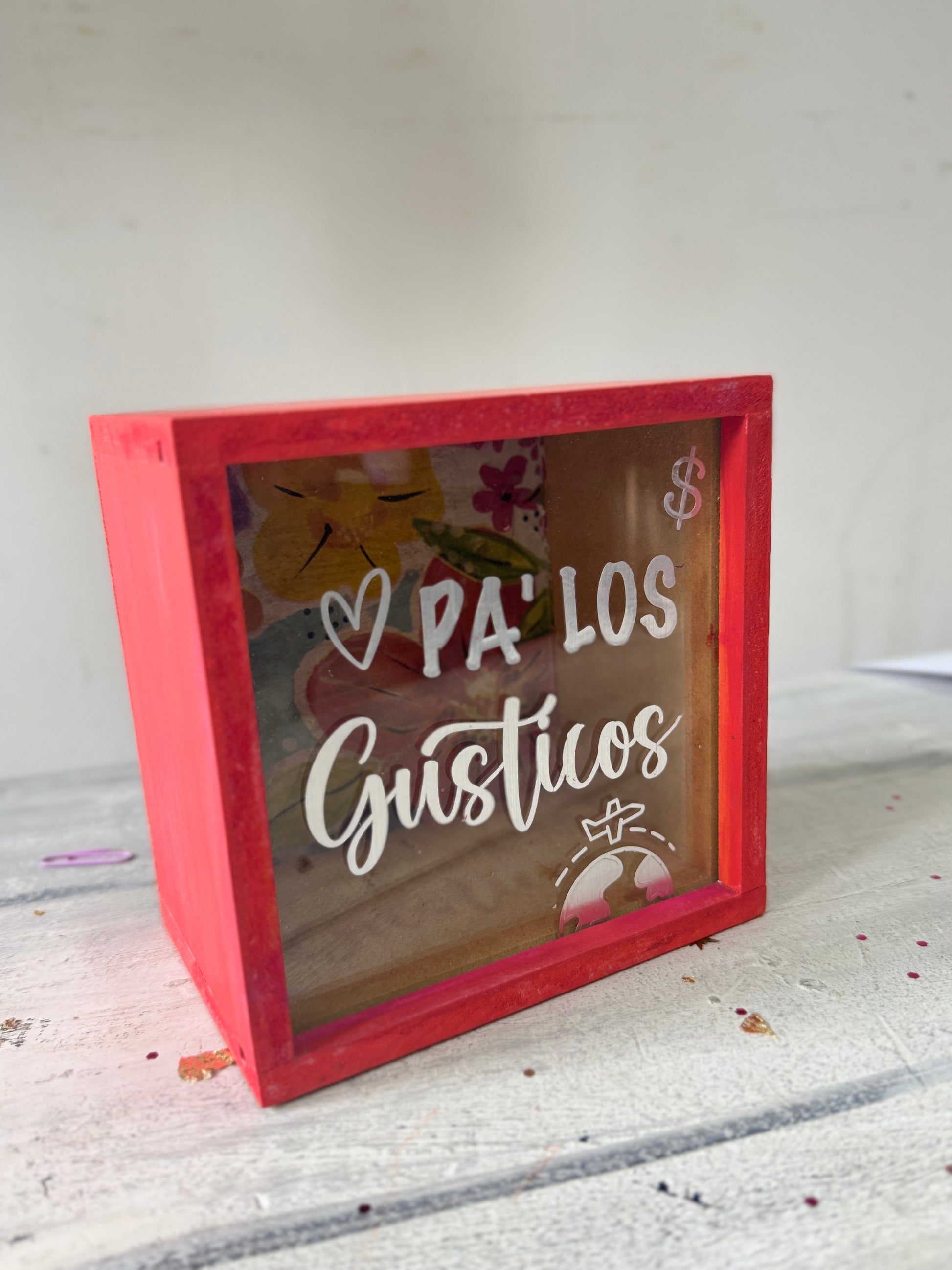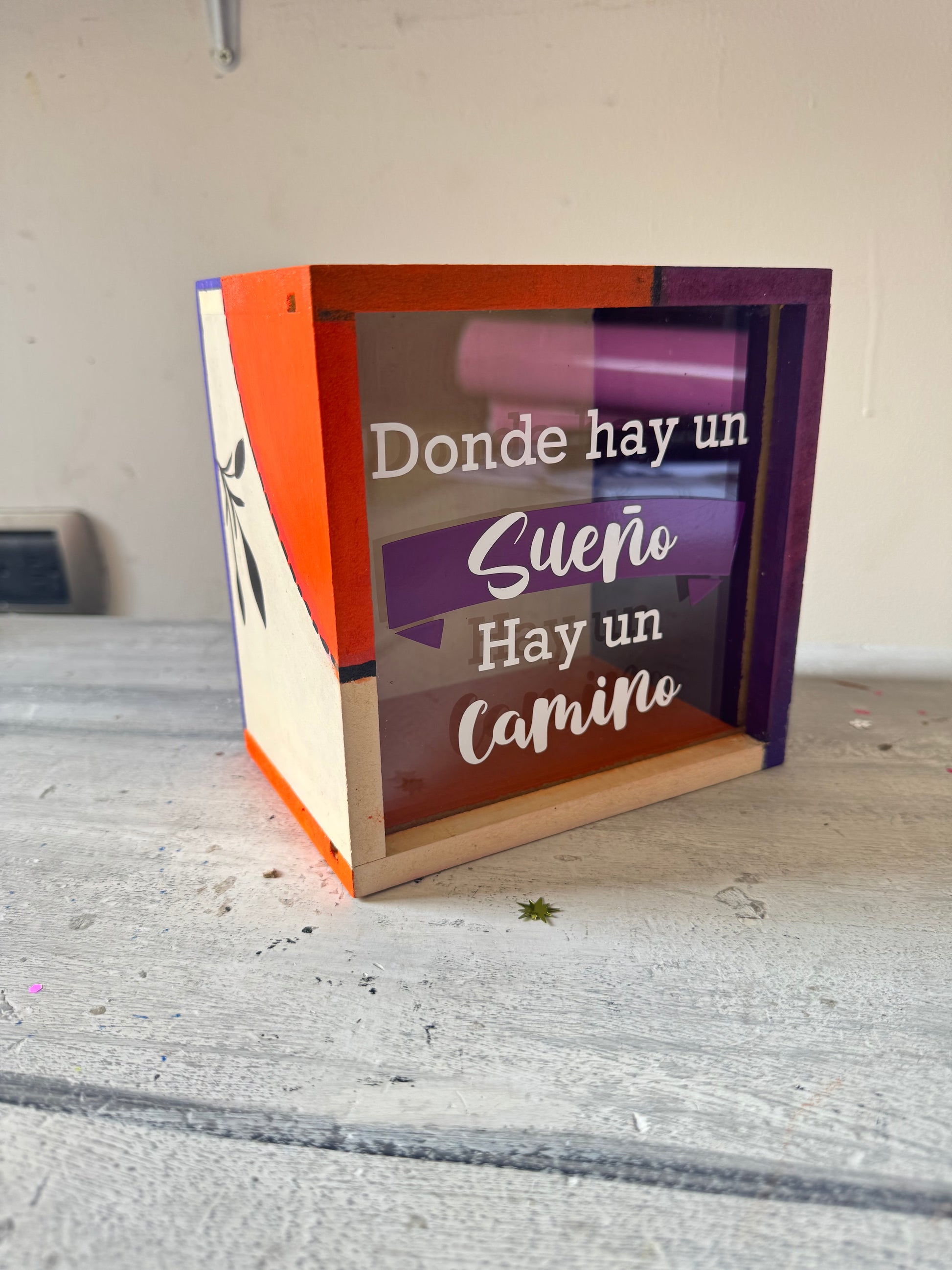 Material en MDF, 16 x 16 cm frente en vidrio con frase bonita.