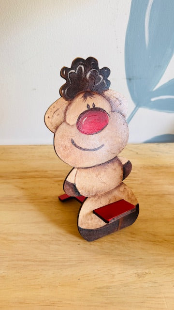 Base para celular con diseño de reno, útil para tu escritorio y decorar tus espacios. pintado a mano técnica country, !Llena de magia tus espacios!
