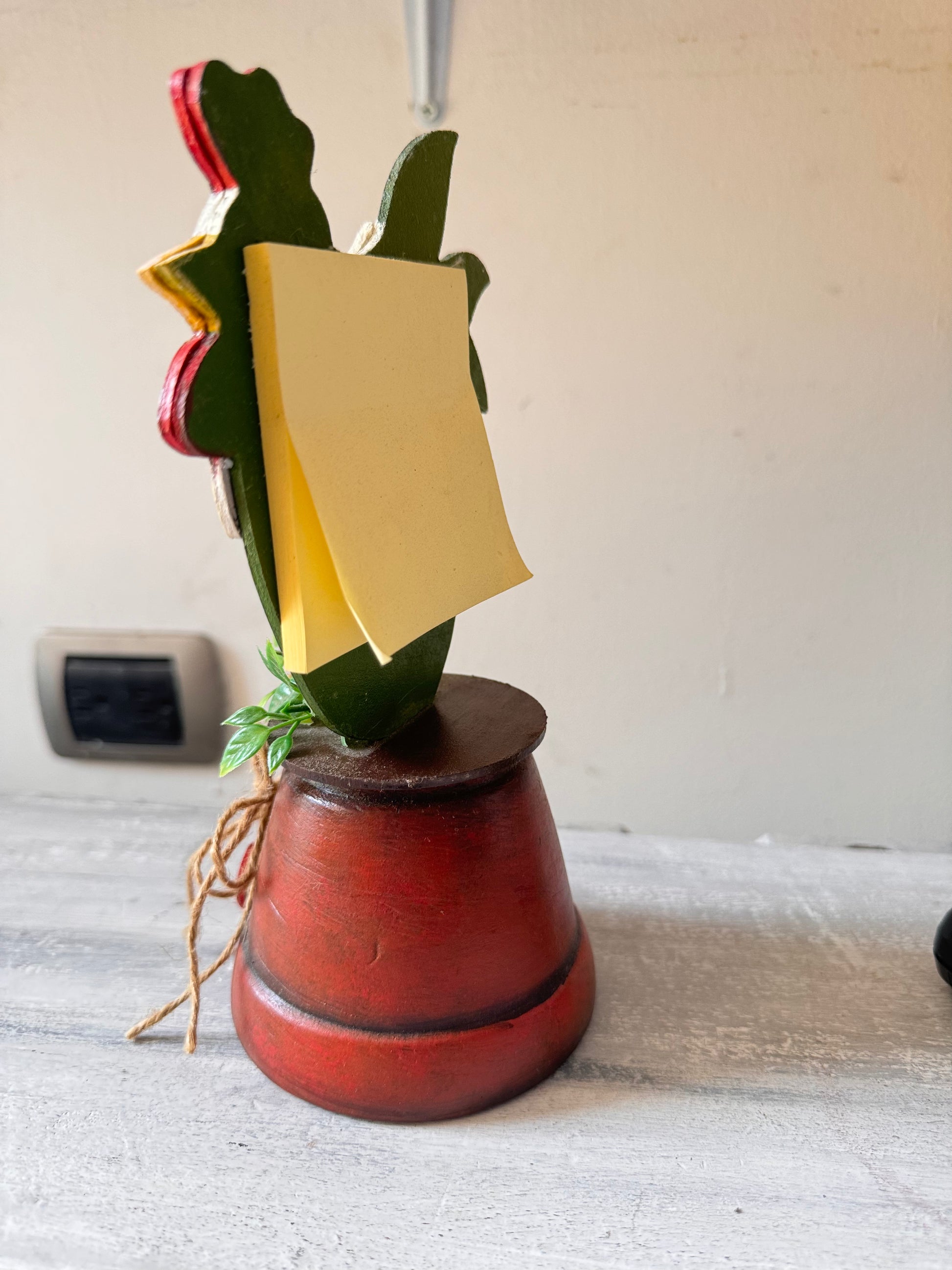 Este divertido articulo en forma de gallina de madera es el compañero perfecto para tu cocina. Además de darle un toque alegre a tu espacio, incluye un práctico block de notas para que no olvides ninguna receta o lista de compras. Ideal para mantener todo organizado con estilo y diversión.