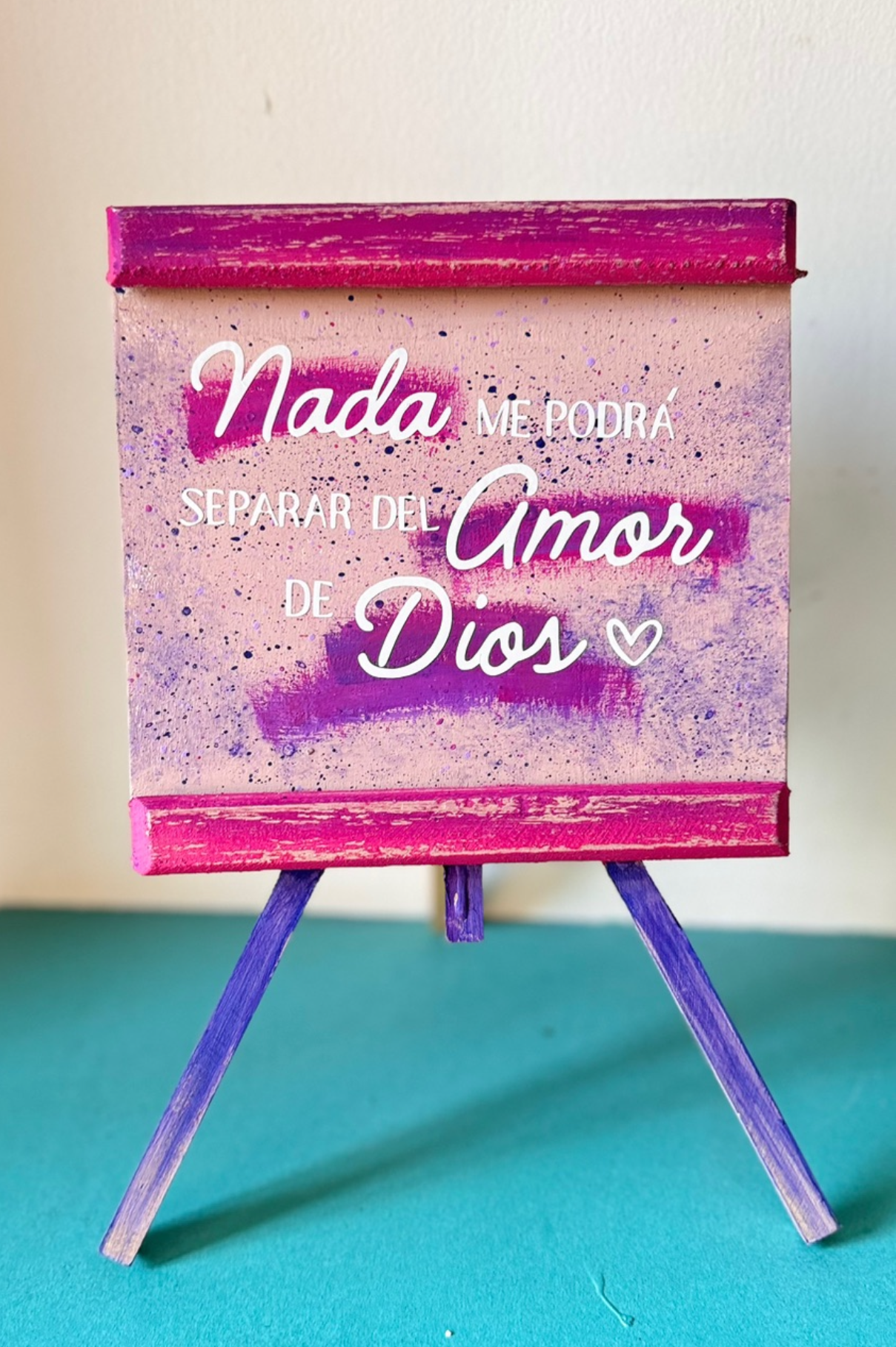 Este cuadro decorativo para repisa o mesa presenta el versículo Romanos 8:35, ofreciendo un mensaje inspirador y de fortaleza espiritual. Su diseño compacto y elegante lo hace ideal para complementar cualquier espacio, aportando un toque de fe y reflexión diaria. Perfecto para quienes buscan un detalle significativo que motive y acompañe en el día a día.